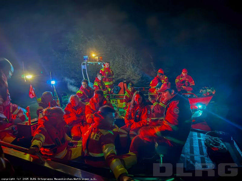 Gemeinsam mit den Ortsgruppen Burgsteinfurt, Ibbenbüren, Rheine und Emsdetten fand am vergangenen Samstag eine gemeinsamer Ausbildungsabend zum Thema Nachtfahrt mit dem Motorrettungsboot statt.