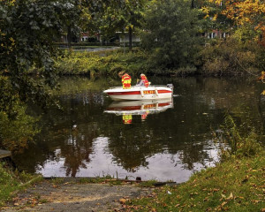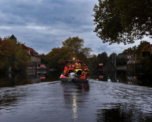 Zentral vom DLRG Bezirk Steinfurt organisiert fuhren zwei unserer Bootsführer mit dem Gerätewagen Wasserrettung (GW-W) zum Timmermannufer nach Rheine, wo wir gemeinsam mit den anderen Ortsgruppen unsere Mehrzweckboote zu Wasser ließen. Anschließend ging es stromabwärts entlang des Emswehr durch die Innenstadt in Richtung Rheine Bentlage.