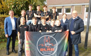 Glücklich und überaus stolz kamen am Sonntag die Teilnehmer der Deutschen Meisterschaften ins Rathaus nach Wettringen. Bürgermeister Berthold Bültgerds, und sein Neuenkirchener Kollege Willi Brüning, empfingen unsere Schwimmer, die überaus erfolgreich an den Deutschen Mehrkampf-Meisterschaften, die in diesem Jahr in Hannover stattfanden, teilgenommen hatten. Bei den Einzelwettbewerben erreichte Henning Rösler den 5. Platz, Jannis Schinor wurde 9., Julian Austrup 11. (alle Altersklasse 13/14 männlich). Titus Spenrath wurde in seiner Altersklasse (12 männlich) 30. Die Mannschaft in der Altersklasse 12 männlich schaffte es mit dem 8. Platz unter die Top Ten in Deutschland. Im Mittelpunkt standen die vier Schwimmer der Mannschaft in der Altersklasse 13/14 männlich - denn sie schafften es mit überragenden Leistungen den Titel zu holen. Zum ersten mal in der Geschichte der Ortsgruppe wurde damit ein Titel auf Deutschen Meisterschaften errungen.