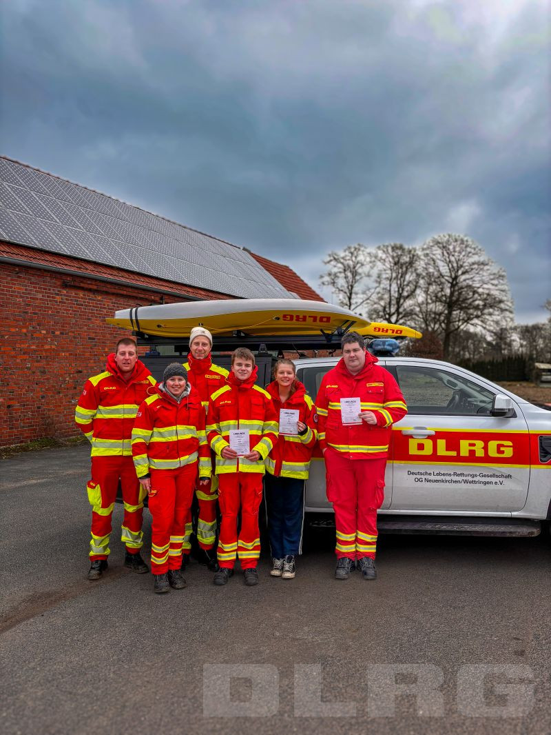 Bei praktischen Übungen in der Ems in Rheine Bentlage, sowie am Offlumer See konnte das erlangte Wissen unter Beweis gestellt werden. Nun bereichern sie mit einer weiteren Fachqualifikation den Bereich Einsatz der DLRG Ortsgruppe Neuenkirchen/Wettringen e. V. und sorgen ehrenamtlich für Ihre Sicherheit.