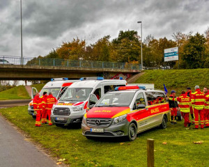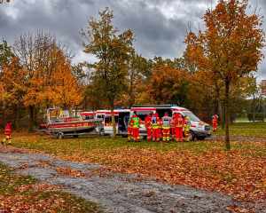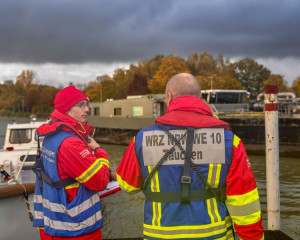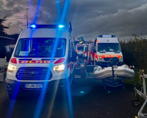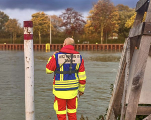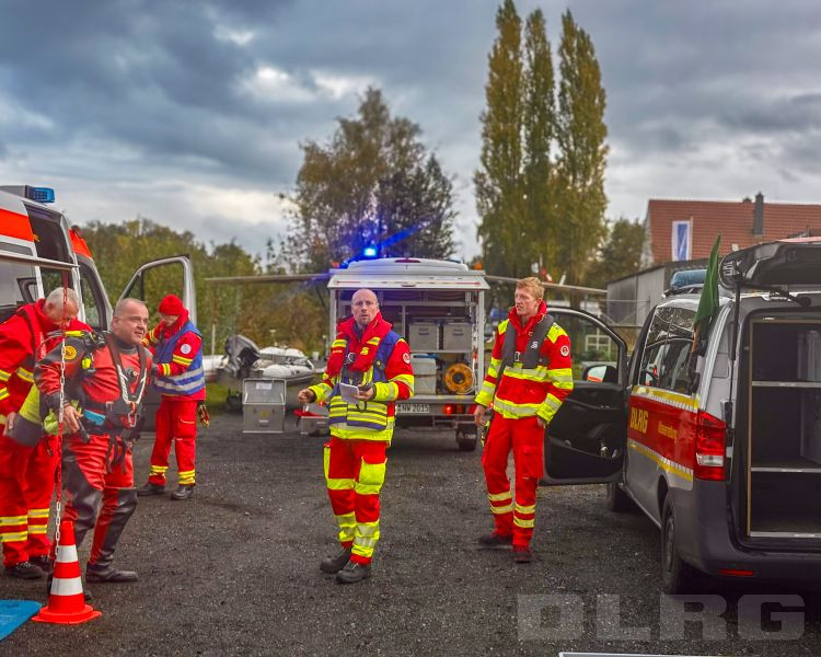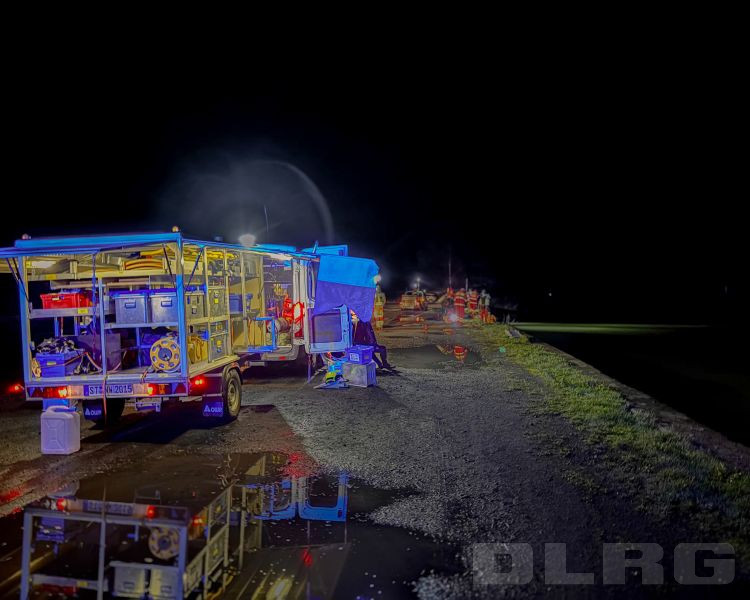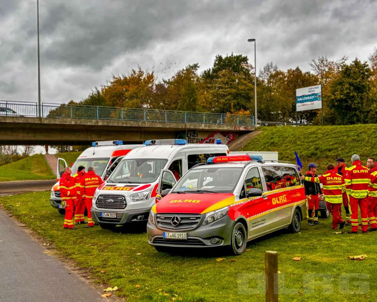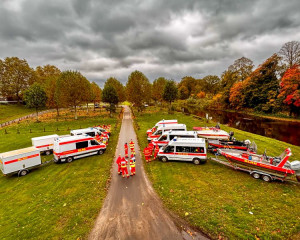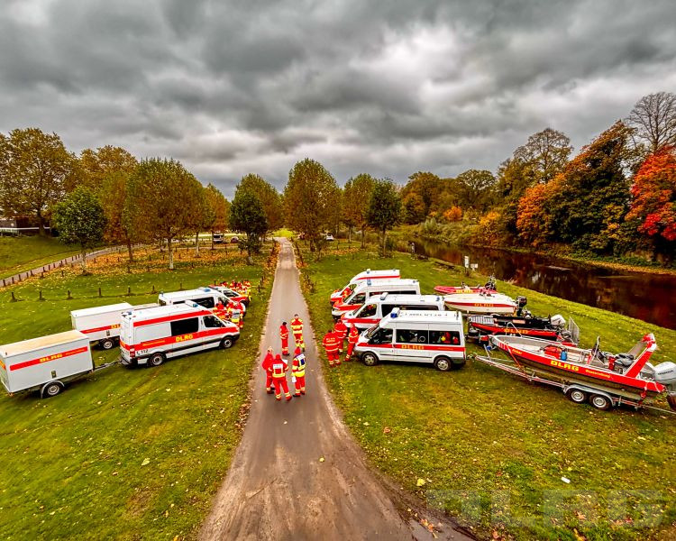 Es ist 09:06 am Samstag den 25.10.2025. Der Wasserrettungszug Bezirk Steinfurt (WRZ-Stf) wird im Rahmen einer Unwetterlage mit steigenden Pegeln durch den Bezirk Steinfurt in den Sammelraum nach Greven alarmiert. Unser Tauchtrupp mit fünf Einsatzkräften rückt zeitnah für einen Einsaz von bis zu 24 Stunden mit dem Gerätewagen Tauchen, sowie dem dazugehörigen Geräteanhänger Tauchen aus - Die großangelegte Katastrophenschutzübung des Bezirks Steinfurt und des Bezirks Münsters beginnt!